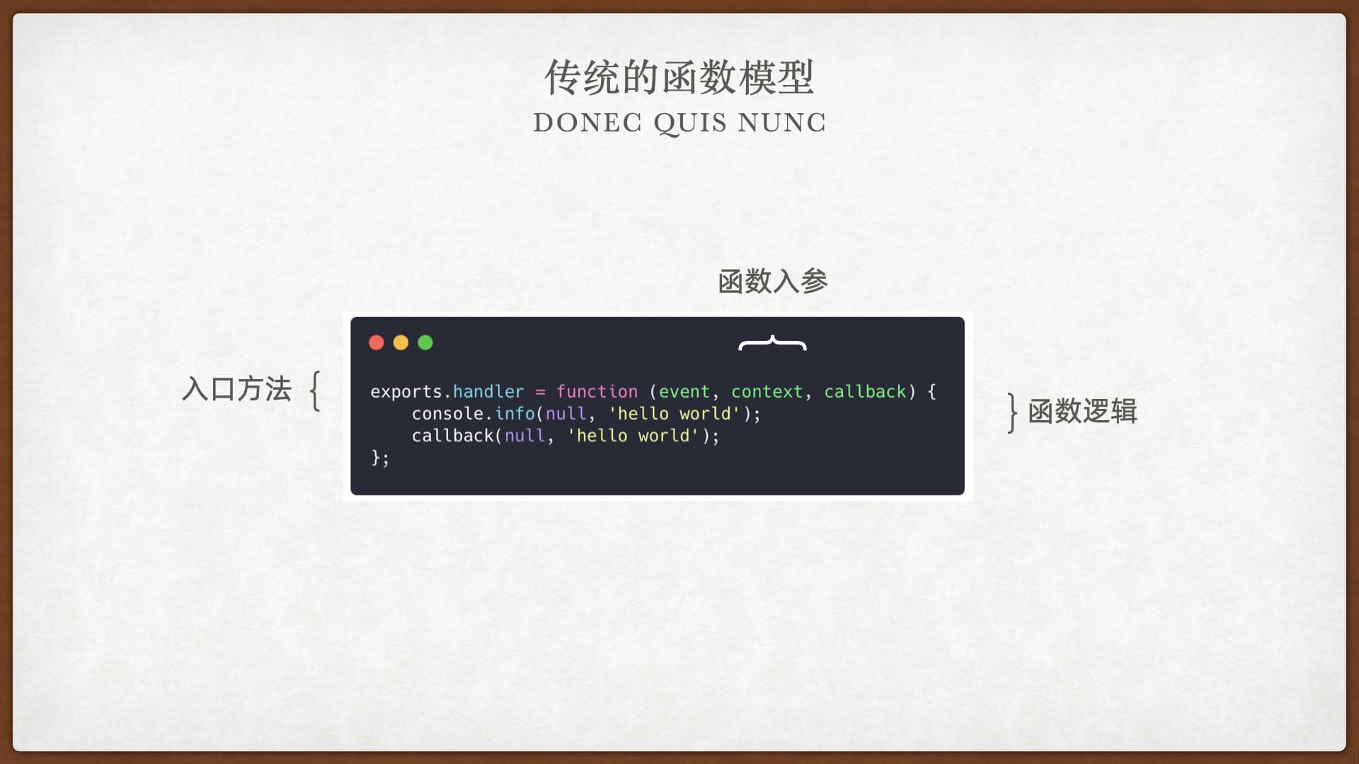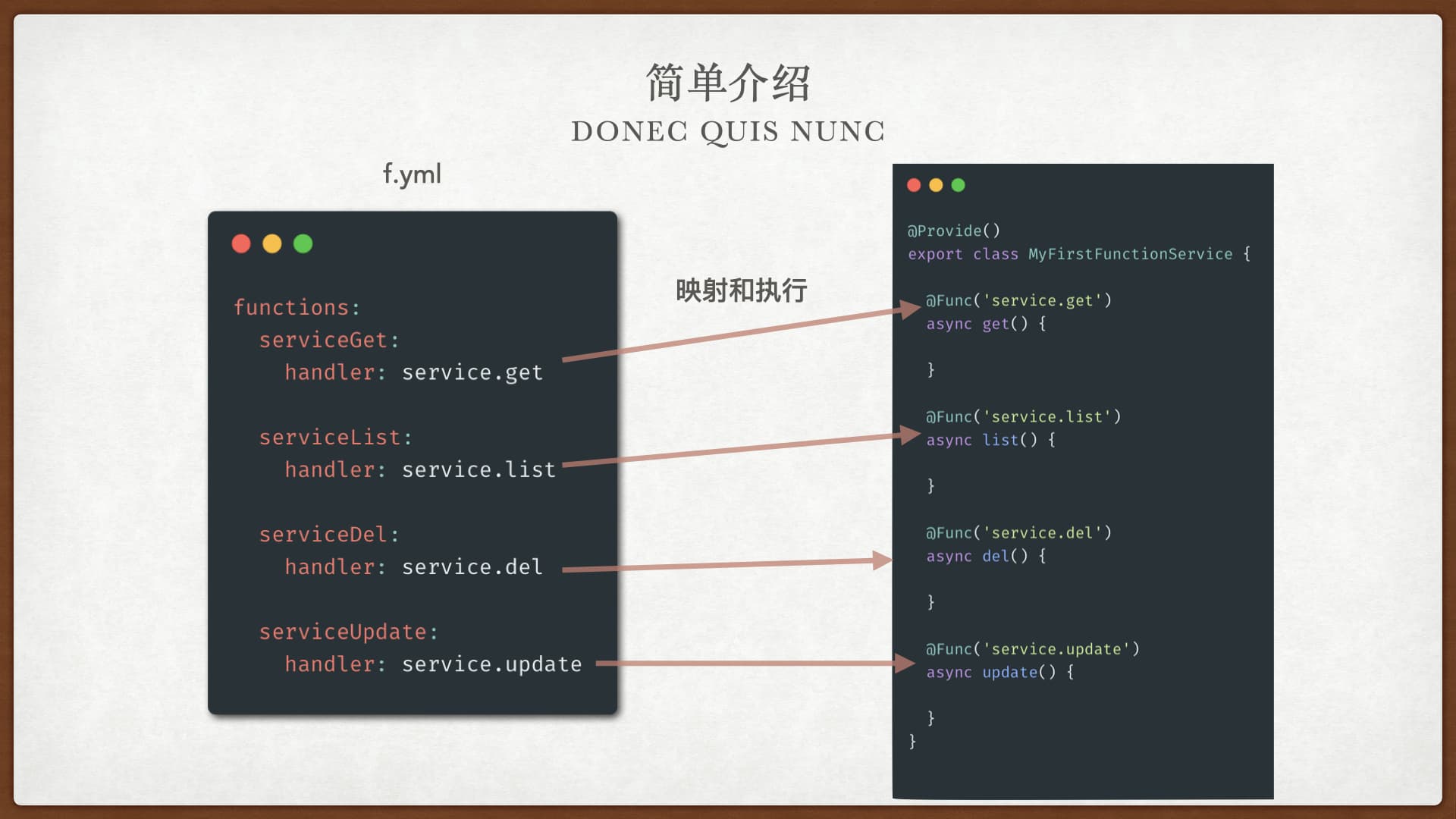 就承载了之前的路由层的功能,在 Serverless(FaaS)体系中,路由交给了网关处理,那么我们只需要在项目代码中写对应的原 Controller 的内容即可。