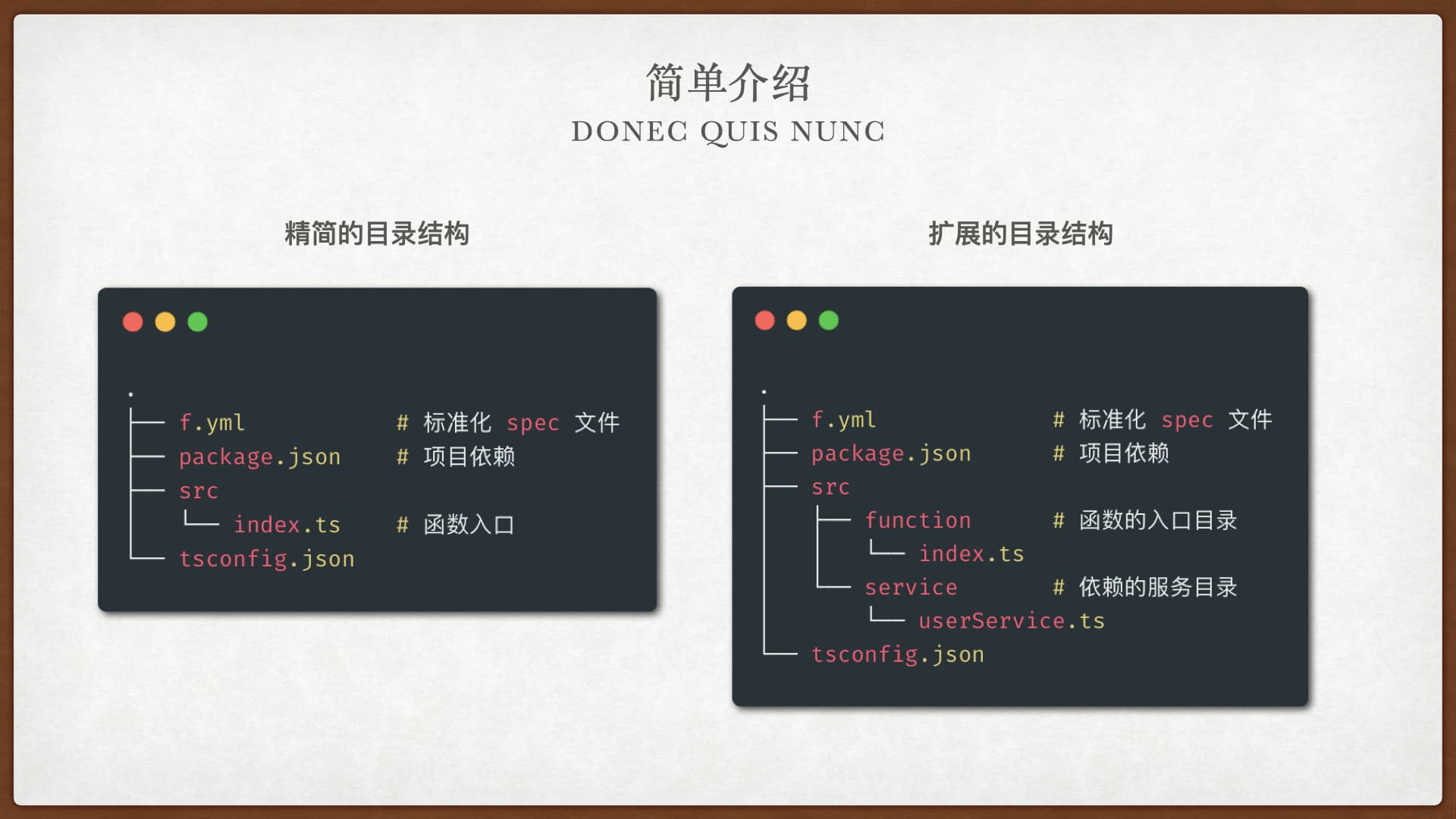这是我们经典的目录结构,最简单的,抛开 ts 的一些文件,只需要 f.yml