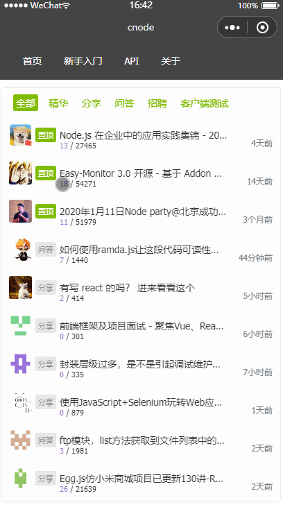 小程序重构 [cnode社区]:mpvue + 开源api,现已上线!